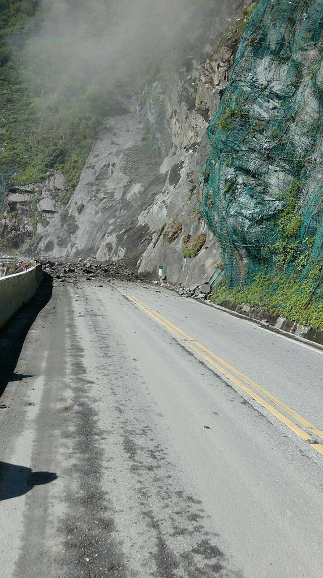 蘇花公路台9線,149.7公里附近,今天(5)上午11點左右,再度發生落石掉落,當時岩塊剝落險象環生,據了解目前沒有人受傷。因該地段要做刷坡佈線的整備,路上兩邊都有工作人員在監看,突然發現有零星小石落下,當時趕緊做機動管制雙向車輛,沒多久大石就落下,岩塊大約300立方米,目前是單線雙向通車。明日開始將會改成每半點放行一次。