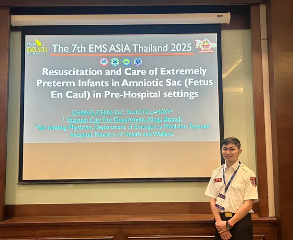 這段經驗後來也被他帶到今年二月於泰國舉行的2025 EMS Asia亞洲救護年會,分享給來自各國的專業夥伴,引起熱烈討論並獲得國際肯定。