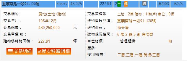 ▼重慶南路透天店面4.8億創新高。(圖/翻攝自不動產交易實價查詢服務網)
