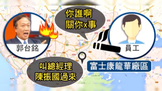 (圖/郭董最近到富士康的「深圳龍華廠」視察,結果卻發現員工違反規定在廠區抽菸,被郭董阻止還回嗆「你誰啊」,讓郭董氣炸了)