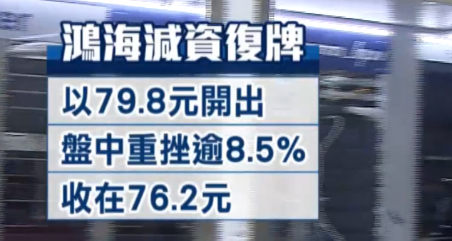 ▲鴻海復牌首日以79.8元開出,盤中重挫超過8.5%,收在76.2元。(圖/東森新聞資料畫面)