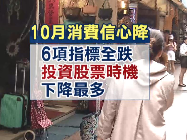 民眾:「像南部不是物價現在很高嗎,就會變得沒有那麼想要過去玩。」民眾:「娛樂會變比較少一點,假日都要去上班之類,要去打工。」民眾喊景氣差,10月消費信心也低到谷底,從物價、房價、就業6項指標全下跌,而下降最多的就是股票投資信心。
