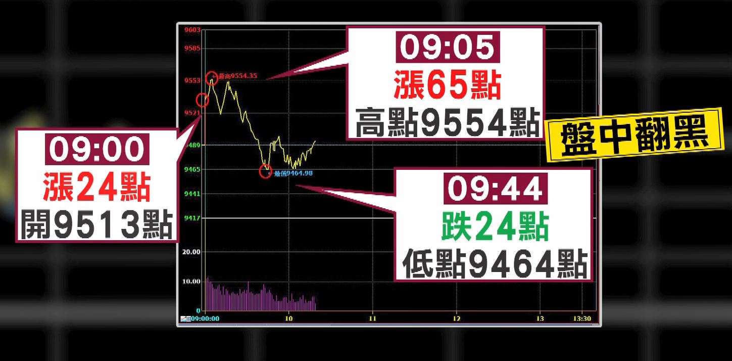 ▲台股29日盤中翻黑,失守9500點。(圖/東森新聞資料畫面)