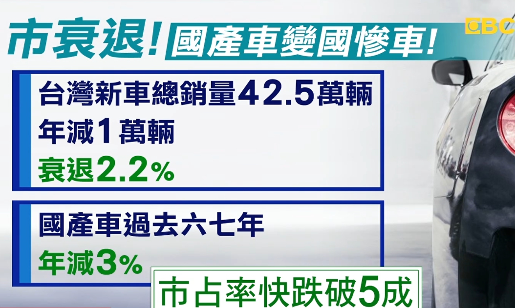 車市同樣受景氣影響,裕隆預估今年台灣新車總銷規模約42.5萬輛,年減約1萬輛,衰退約2.2%,其中國產車更慘,在過去六七年每年都以3%在衰退,市占率都快跌破5成。
