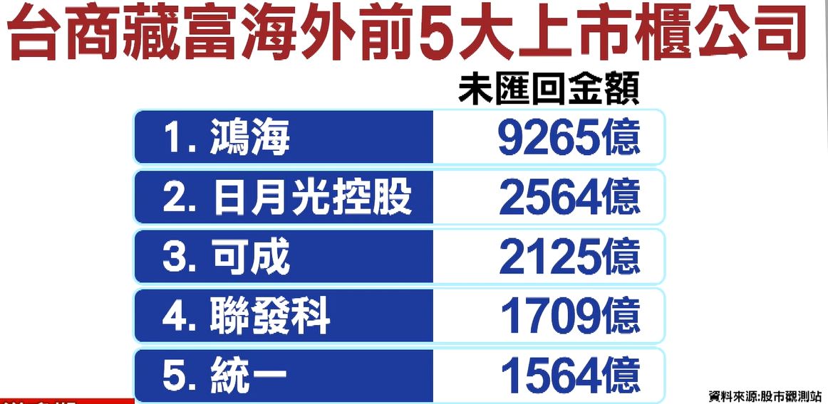 不想把錢送回台灣一定有原因,還有像是日月光、聯發科、統一等集團,海外資金未匯回獲利前10名,台灣企業挑戰的還有這一關。