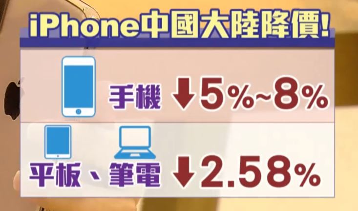 手機通路商:「百來台以上一次拿的量是有到100台,當然可以做回扣。」台灣靠低價衝買氣,現在連中國大陸蘋果官網、電商,全面降價求售,手機降幅最高上看8%,等於便宜了近2300台幣,而iPad和Mac降幅也有2.58%。