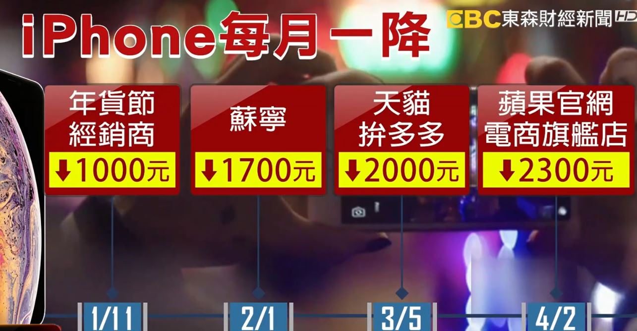 民眾:「現在有的中國手機,做的品質已經比iPhone好了。」、「每一代推出都會換的朋友,現在都不換了。」不是開玩笑,蘋果搶在4/1宣布,響應中國大陸增值稅調降,新機、舊機都降價,1月份電商才以年貨節為由調降千元,2 3月陸續再降,幾乎是每月一降價。