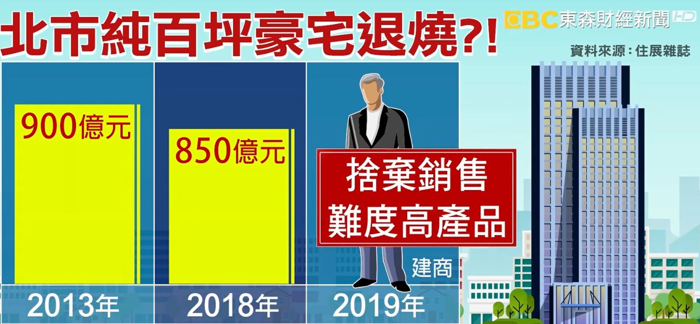 民眾:「我是富豪的話,我也想住百坪豪宅。」、「所以就是可能,就算住一百坪,對他們來講可能還是不太夠。」回顧2018年,純百坪豪宅案就爆出850億元,僅次2013年的900億元,來到2019年,建商反而捨棄銷售難度高的產品。