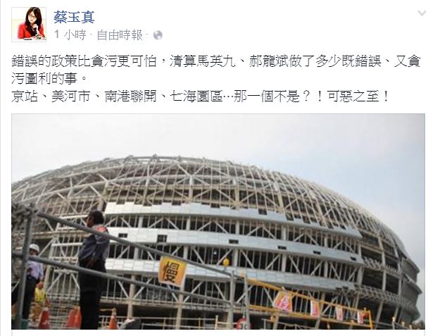 「大巨蛋」北市、遠雄不來電!蔡玉真:錯誤政策比貪污更可怕