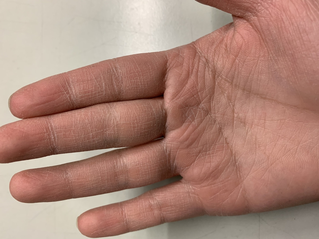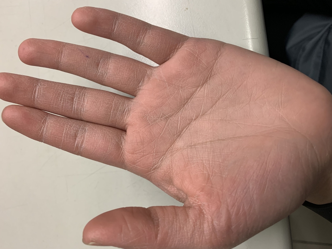 ▼店員的手嚴重龜裂。(圖/取自靠北7-11)