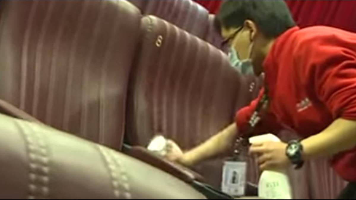 除了哈拉之外,威秀也規定員工上班前要戴口罩量體溫,美麗新影城也會提供酒精消毒,因為電影業真的好慘,就連年假旺季,今年一週票房2.3億,比起去年就少了1億元,來客數更剩不到百萬。連鎖影城行銷業務部主任林凱倫:「疫情爆發之後,這一個整體的業績,是受到蠻大的打擊,我們希望透過這樣子的座位分隔法,還有一系列的消毒作業措施,讓客戶有信心再踏入我們的電影院。」