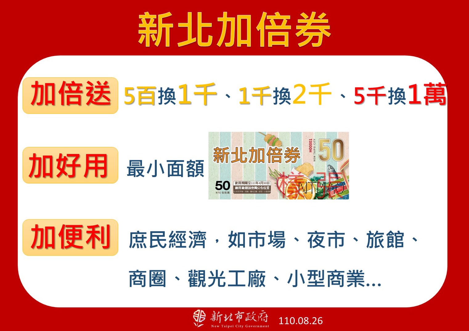 ▼新北市推出「5千換1萬」的加碼優惠。(圖/新北市政府提供)