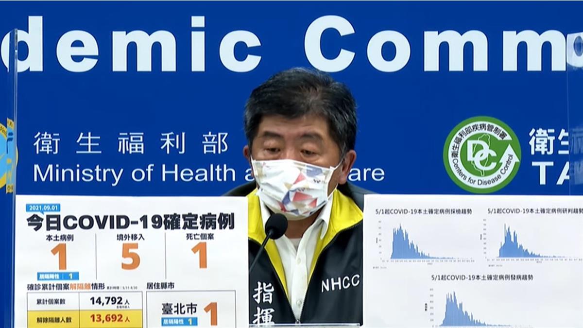 中央流行疫情指揮中心今(1)日公布國內新增6例COVID-19確定病例,分別為1例本土及5例境外移入;另確診個案中新增1例死亡。