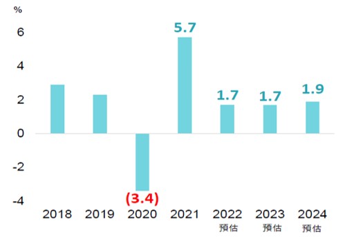 註:2022-2024年預估值係依據聯準會2022年6月份會議之預估。
