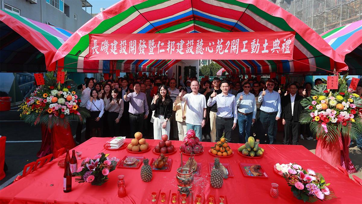 ▲長磯建設董事長黃耀璋(左3)、總經理黃璞(左4)主持聽心苑動土大典(圖/長磯建設提供)