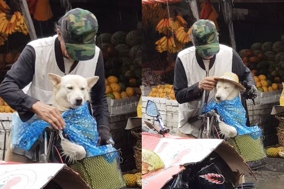 看似稀鬆平常的舉動,卻蘊含著對狗兒深深的關愛!菲律賓達沃日前下雨,Agdao市場一名老爺爺不顧自己淋雨,細心地為腳踏車菜籃裡的愛犬綁上雨衣、戴好草帽。這感人一幕也讓網友們豎起大拇指讚說,「阿伯真的很有愛!」