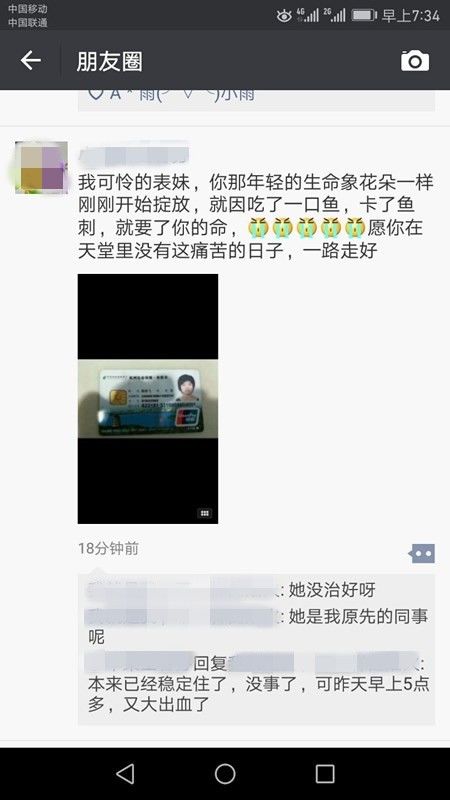 王女相當遺憾,說明表妹平常身體健康,沒有什麼毛病,想不到卻因為一跟小小的魚刺喪失性命,留下還在讀幼稚園的兒子,令人不捨。醫生提醒,若吞下小魚刺,先不要用力吞嚥,可以催吐將魚刺排出,若是吞下大魚刺,一定要馬上去醫院就診。