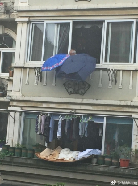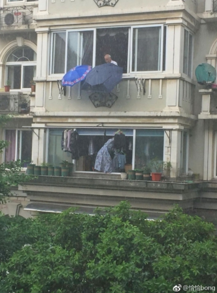 「恰恰bong」1日下午PO出3張照片,表示當天早上突然下起大雨,讓很多人措手不及,有的走在路上來不及避雨,還有些人衣服晾在陽台趕不及收,但是寧波一處社區「永達花園」的住戶非常幸運,因為他有個心地善良的鄰居。