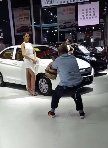 車模的影片,蹲著馬步的專業拍攝姿勢引來不少網友看了後紛紛投以嘲笑的眼光;沒想到,隨後又有一段影片流出,身材火辣的車模居然和阿伯衣衫不整地躺在床上,讓許多網友忍不住驚呼「真勵志!」