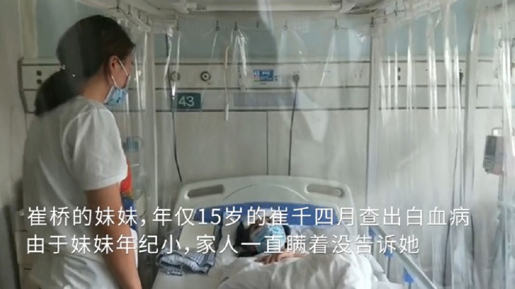 ▼崔橋的14歲妹妹因罹患急性淋巴性