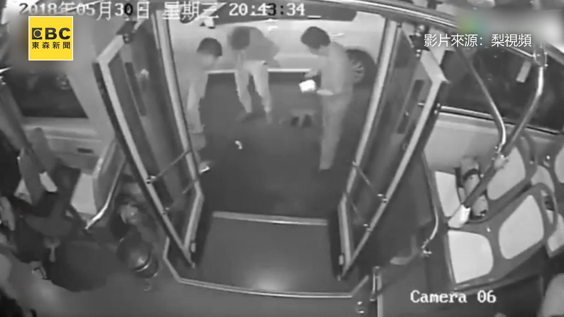 ▼男子將背包拿到公車外(圖/翻攝 梨視頻)