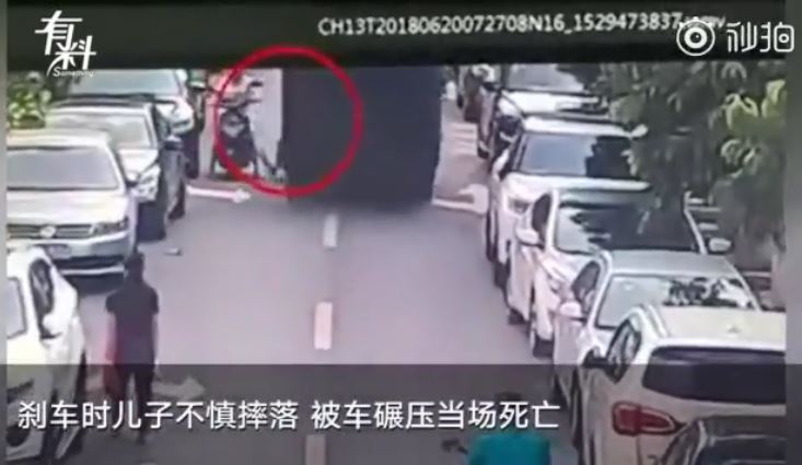 貨車緊急煞車,兒子因此摔落在地,當場被貨車