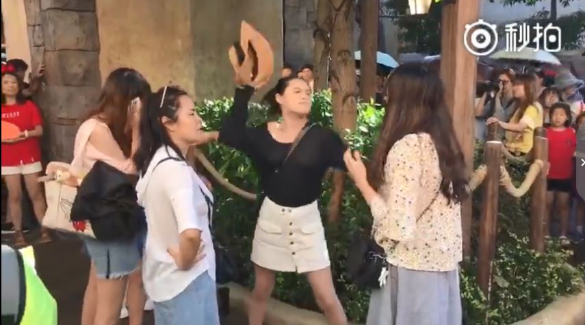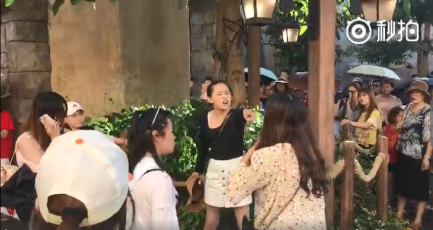 當天在上海迪士尼的遊客目擊此紛爭後,將過程錄下來po到微博,網友指出:「前幾天在迪士尼玩,一個8歲男孩可能不小心碰到小姊姊的屁股,小姊姊說了小男孩幾句,小姐姊說了小男孩幾句,然後這名母親就炸了」,畫面中可以看見,一名身穿黑色上衣白色短裙的男童母親疑似不滿兒子「被管教」,讓她相當氣憤,邊罵拿著手上的帽子就朝女遊客的臉上狂甩,女遊客被打後非常錯愕直呼:「你幹麻打人啊!」女遊客的友人隨即將男童母親拉開制止,男童母親嗆:「我就是要打,關你x事啊!」。