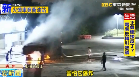 事發在大陸廣州,這輛貨車當時正在高速公路上,車尾突然起火,駕駛緊急開到附近的休息服務區求救,但旁邊正好是加油站,貨車差點直接撞上,還好及時停下來,加油站員工當下先疏散其他民眾,之後大家合力將火撲滅,才沒發生大爆炸。