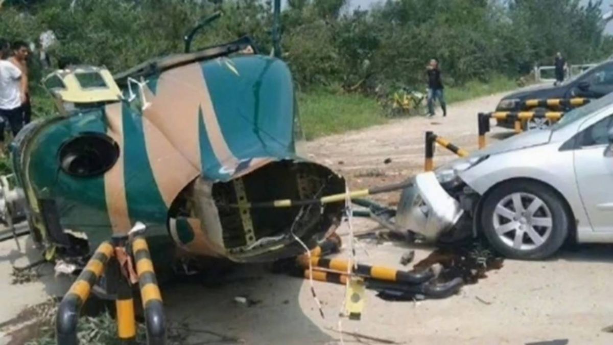中國大陸北京,發生一架直升機墜落意外,最後這架直升機墜落時砸到地面上一輛汽車,而機上4人受傷幸好沒有生命危險。