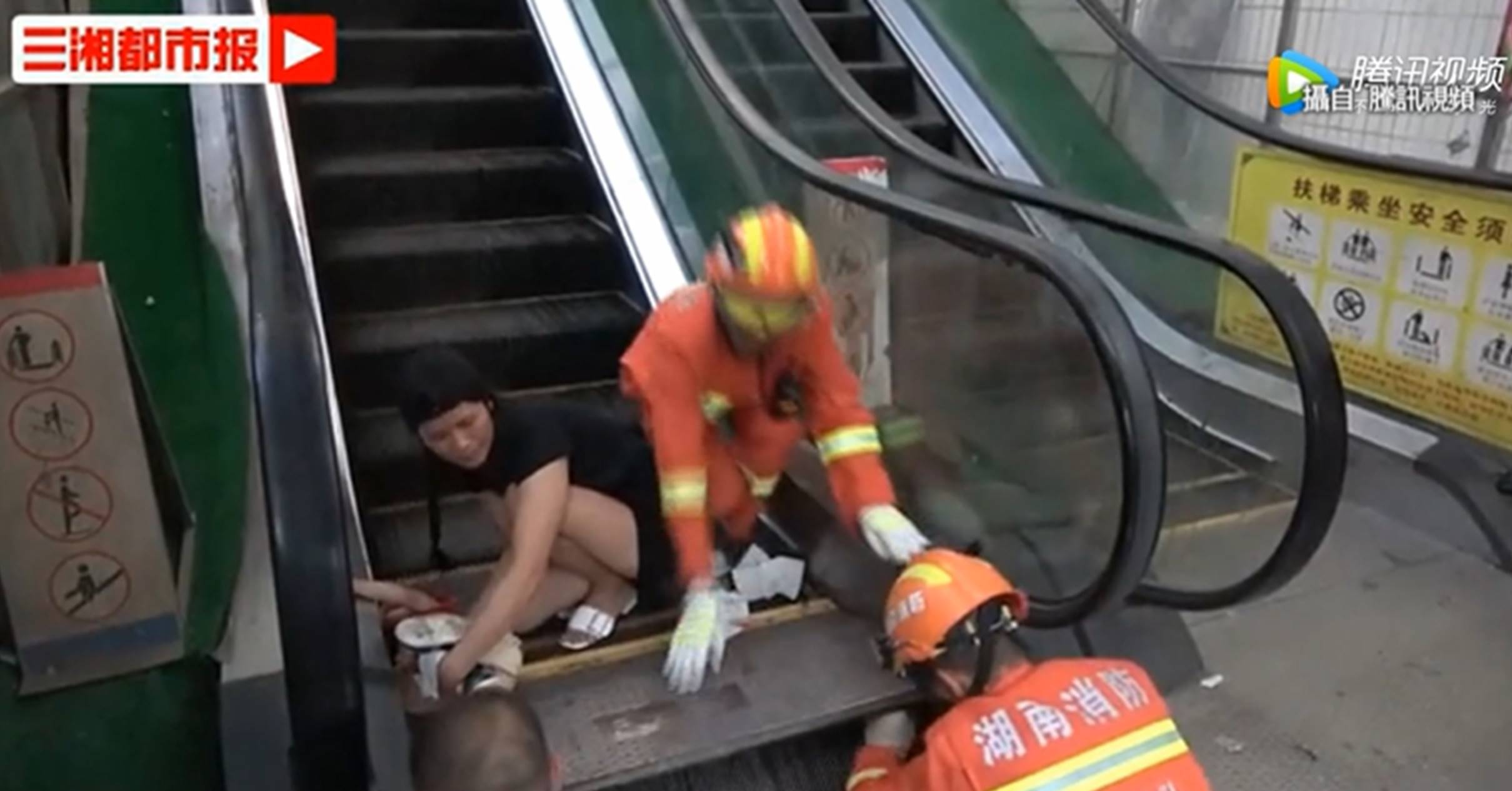 女童病房醫生:「她現在生命體徵平穩,有點發燒,這個病人年紀很小,手術創傷很大,手就差不多完全斷離了嘛。」這起意外發生在大陸湖南的一間商場內,事故發生原因,疑似是因為女童當時正在手扶梯旁玩耍,但卻遇上機器故障,才不慎將手臂夾住。類似事故還有山東這一起,4歲小女孩想要跑上手扶梯玩耍,第一次被媽媽拉了下來,但她很快又掙脫媽媽的手跑了上去,沒想到下一秒,自己不小心就摔倒,左腳卡進手扶梯的縫隙裡,順利被救出之後,也被連忙送往醫院治療。