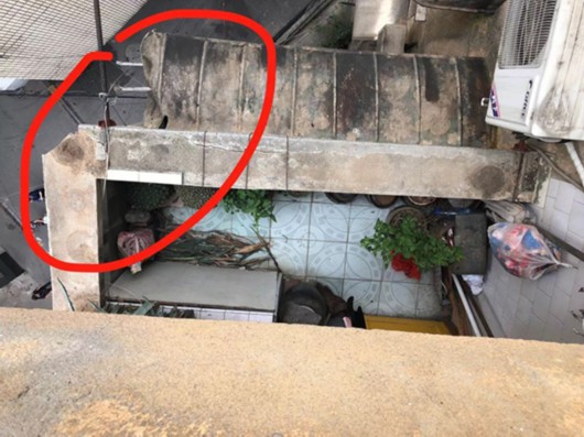 花盆,就這樣跟著水泥塊一同剝落,恰好不偏不倚地砸中男童,當場導致他的顱骨被砸開。