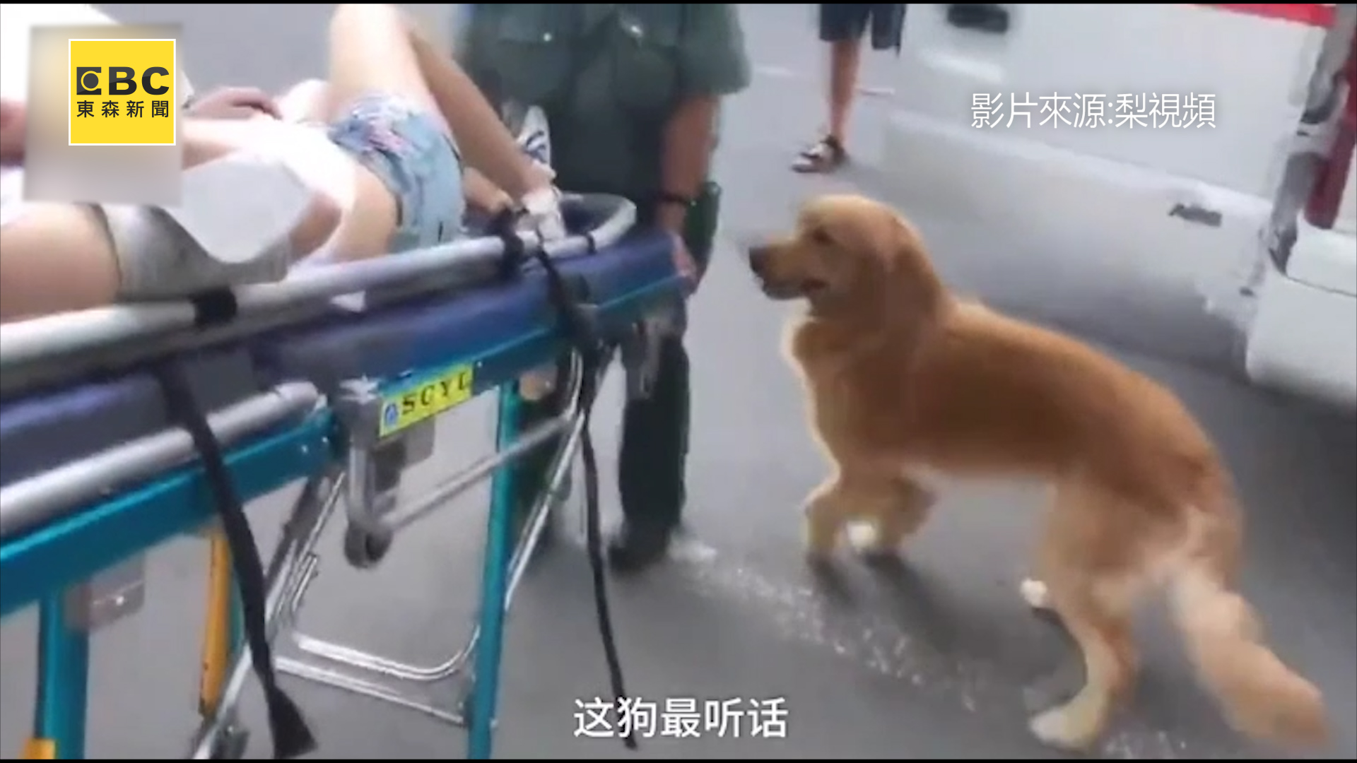 狗狗真的是人類的好朋友!大陸黑龍江有一名女子在遛狗的時候突然昏倒,一旁的黃金獵犬不斷在主人身邊徘徊,好像很擔心主人的樣子,醫護人員趕來後,將女子扛上擔架,黃金獵犬更是趴上擔架看著主人,並陪伴她送醫治療。