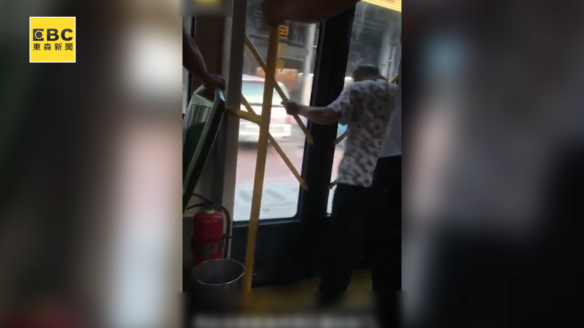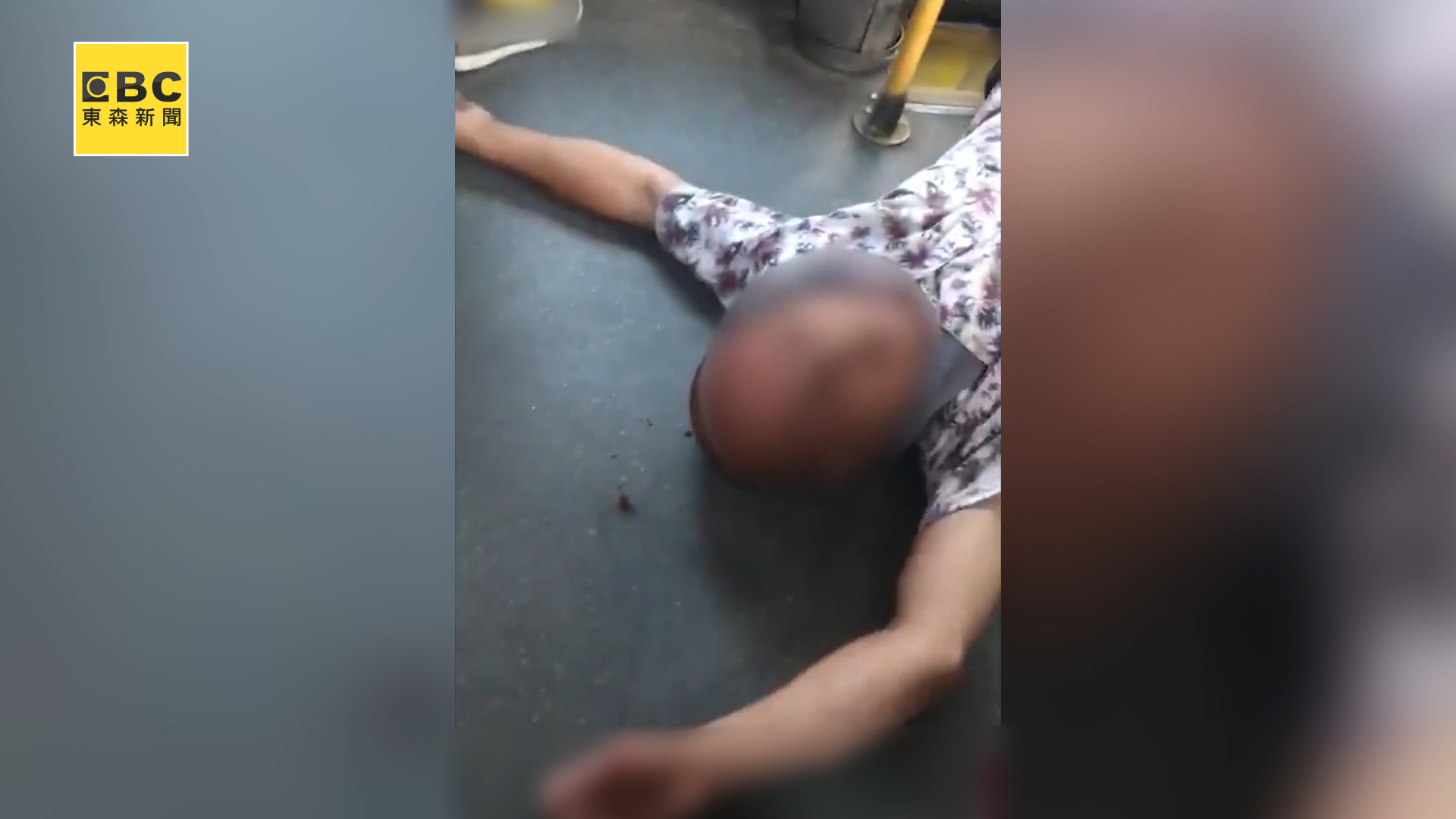 公車的中門,不斷大聲呼喝要求司機停車,遭到多次司機回絕後,讓他氣得直接嗆聲,「不開門,我就死給你看」,下一秒拉著門上的扶手後,就用力把頭往車門玻璃一撞,接著便頭破血流,展開雙手倒臥在地,直到他清醒後,經其他乘客力勸,才終於願意自行下車離去,結束一場鬧劇。