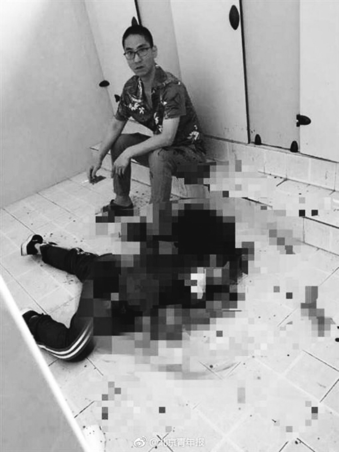 據了解,砍人的是一名36歲的林姓男子,由於女兒13日與葉姓男同學發生口角衝突後眼睛被打傷,不捨女兒受傷的他,一氣之下就帶了水果刀直衝學校,並在學校三樓的廁所將男童殺害,事後更坐在男童屍體旁抽菸,一點悔意也沒有。