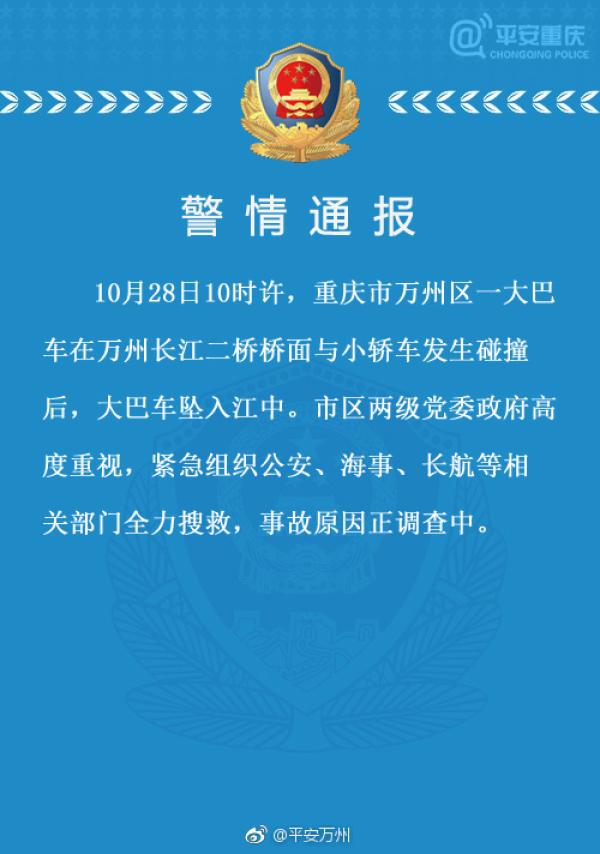 《央視新聞》報導,現場目前已撈起2具罹難者遺體,但由於長江的河水又深又急,車內存有氣室的可能性較小,也增加了搜救難度,車上乘客生還的機率不大,恐怕會死傷慘重,目前當地公安以及重慶的民間救援隊伍,還在如火如荼地進行搜救。