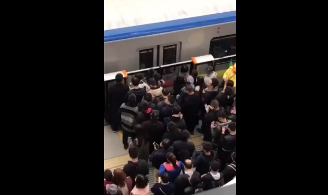 先上後下的秩序呢?近日微博瘋傳一段13秒的既爆笑又殘忍的影片,2名通勤男子搭乘地鐵,到站後準備衝下車,結果車門一打開第一人成功穿越人海脫困,第二人正試圖撥出一條活路時,卻慘遭「人浪」吞噬,默默地被擠回車內,悲慘的「地鐵生活」引起網友的共鳴,直呼:「這就是遲到的原因啊」。