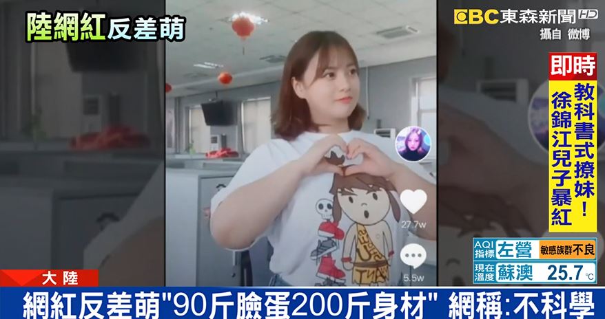 這名擁有天使臉蛋的正妹跟風玩起抖音,隨著音樂擺動,水汪汪的大眼還有白皙肌膚,高顏值照片PO上網,馬上引起網友關注討論,有網友馬上肉搜這位抖音網美,發現這位女孩的體重,並不是大多數人追求的精瘦身材,還因此被戲稱「90斤臉蛋,200斤身材」換算成台灣公斤制大概100公斤,等同於兩個一般女孩。