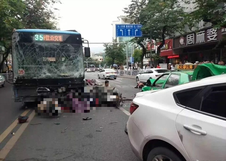 根據「多維新聞」的影音畫面,有數名受傷者躺在街上靠近公車處,公車車頭嚴重毀損。