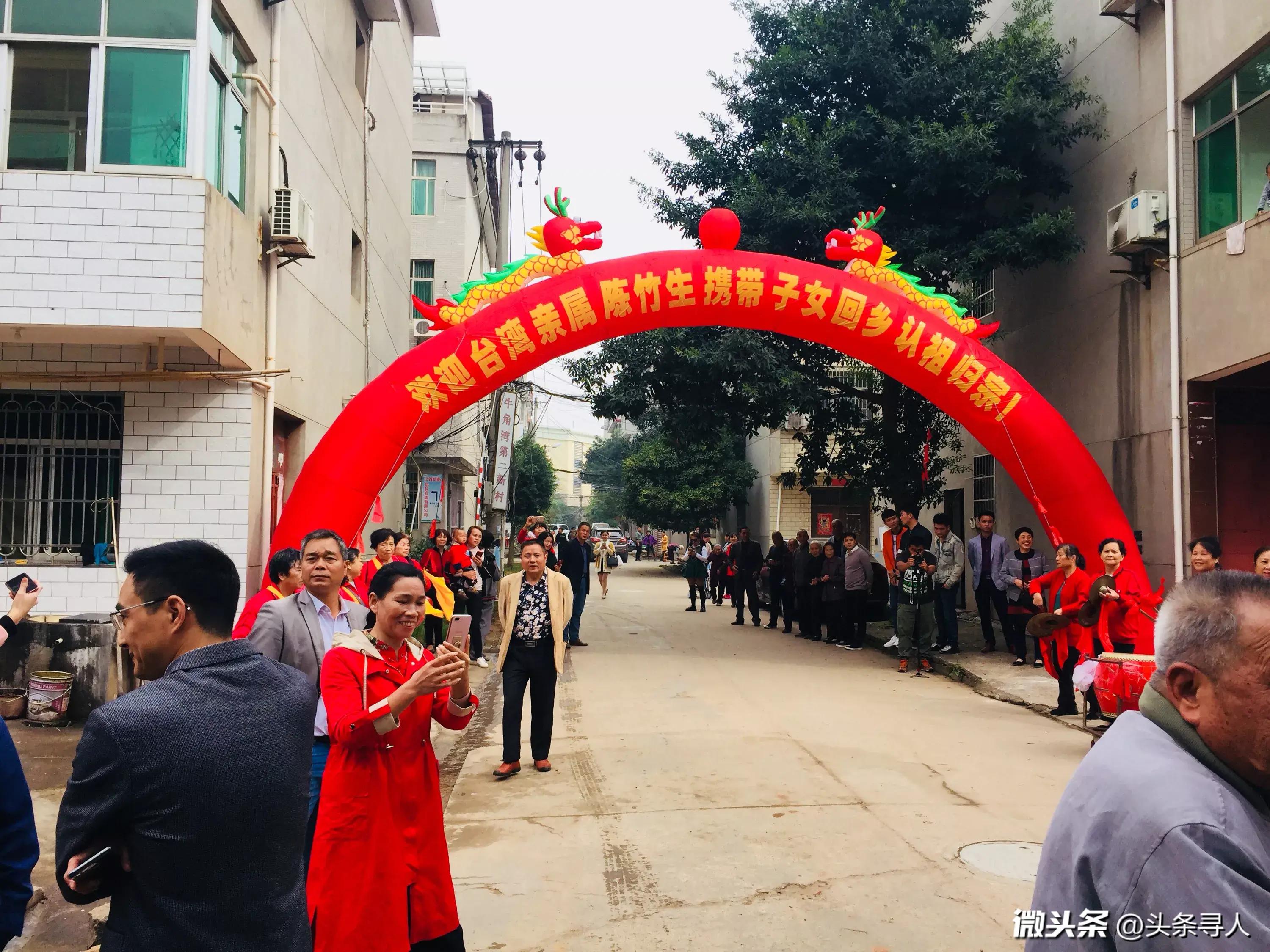 10月24日,大陸江西省撫州市臨川區南關村牛角灣熱鬧非凡,氣球拱門上寫著“歡迎台灣親屬陳竹生攜帶子女回鄉認祖歸宗!”熱情迎接從台灣遠到而來的陳竹生老人回家團聚。 中午,陳家人在自家門前設宴,14桌人、四代同堂,陪著老人吃頓團圓飯,慶祝這個來之不易的團圓時刻。