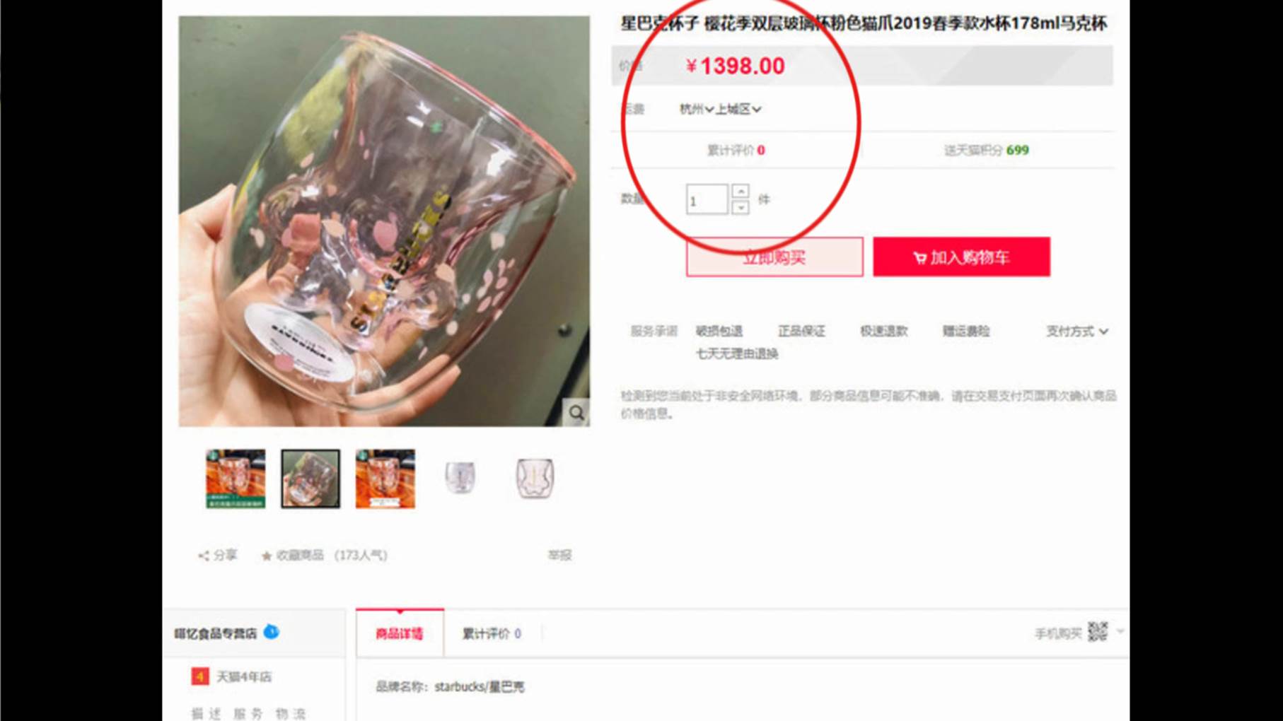 真的不誇張,為了搶賣這杯子,有人在咖啡店外搭帳篷,這個杯子售價人民幣199約台幣914塊,由於太過搶手,有人買到後立馬在網路上轉售,現在已經喊到一個1398塊人民幣,超過台幣六千四百塊,漲了將近七倍,可見瘋狂的程度。