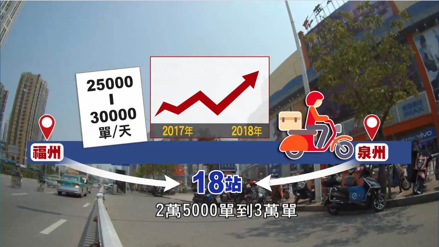 ▼福州、泉州共18個站點,一天的單量至少2萬5000單到3萬單(圖/東森新聞)