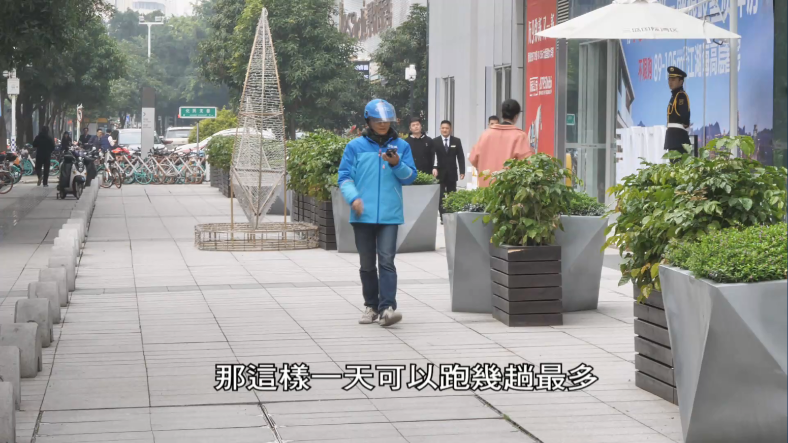東森特派記者鄭和明:「想要賺到一個月一萬塊(人民幣)的薪資待遇嗎?像這位外送小哥一樣,必須每天要跑55單以上,而且一天要工作12個小時,服務的範圍,從這個站區幅射向外出去,將近三公里的地方,都是他的工作範圍。」