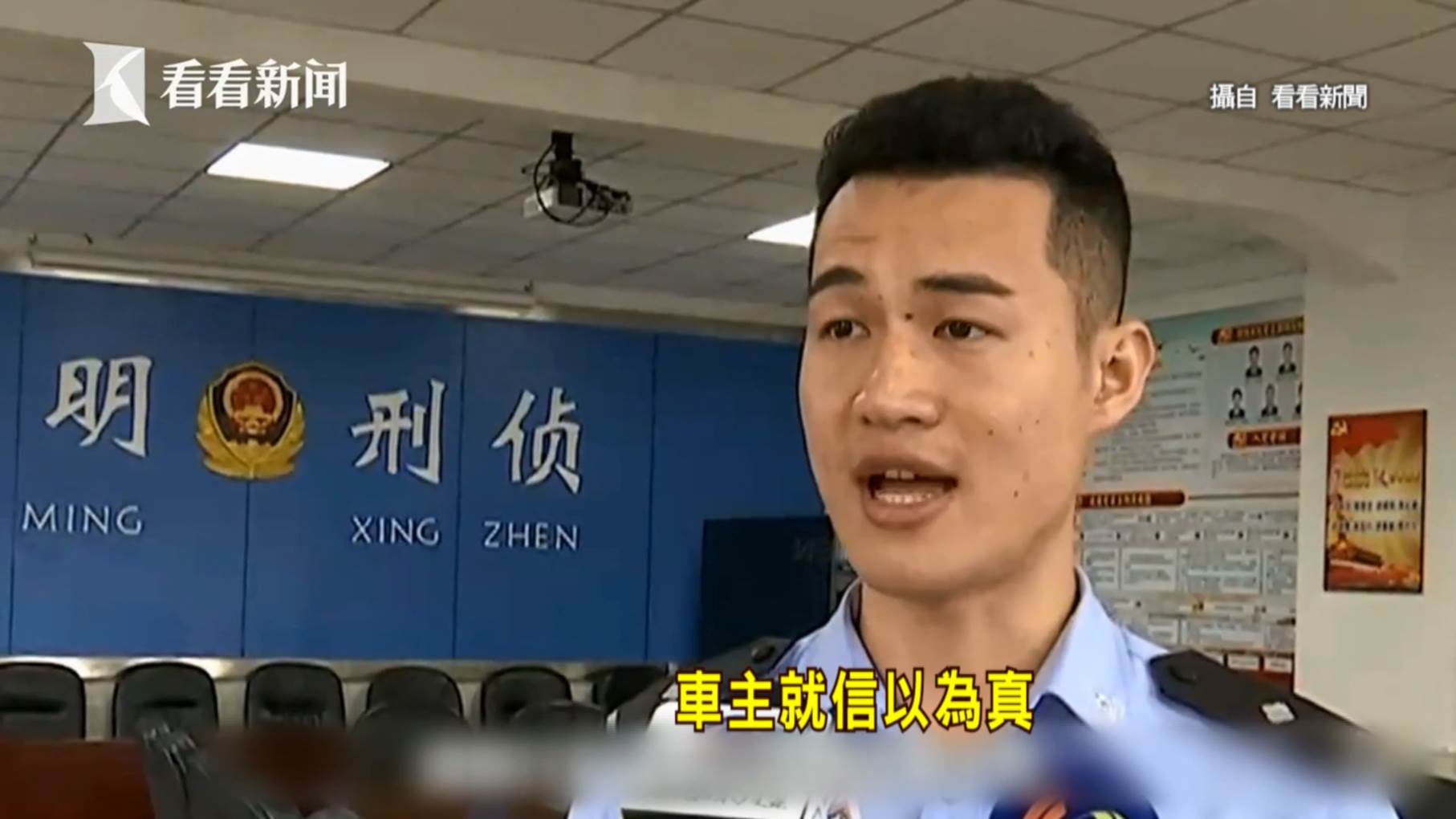 廣東佛山警方吳警官:「車主一開始是不相信,碰撞或者有什麼交通事故,接著這夥嫌疑人,將事先製作好的虛假行車紀錄器視頻給車主看,車主就信以為真。」