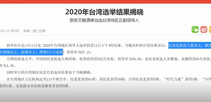 ▼廈門網公開蔡英文得票數。(圖/東森新聞)
