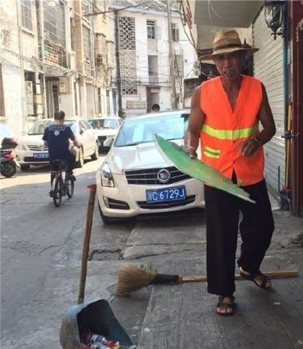 ▼老伯平常的工作是清潔工(圖/成都晚報)