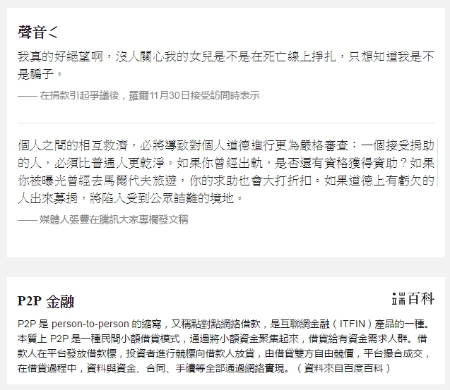 白血病而其中年父親因醫療費深感無力的文章陷入熱議。這篇在短短三、四天內閲讀量超過200萬的文章,令深受感動的網友慷慨解囊,通過微信的打賞、發紅包及轉賬功能向女童父親捐助逾250萬人民幣,但同時也有聲音質疑事件為惡意營銷以及詐捐。