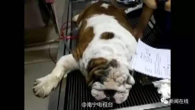 ▼飼主因為嫌鬥牛犬眼睛太小、皮太皺,就帶去醫院整形結果暴斃死。(圖/翻攝自南寧電視)