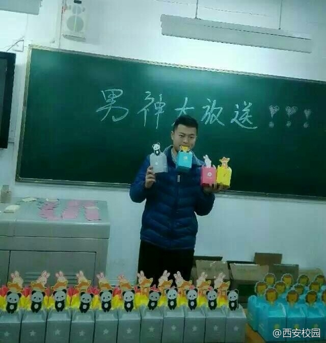 根據《華商報》報導,這位暖男叫做喻浩,看起來文質彬彬,是西安翻譯學院14級漢語言國際教育專業301班的班長,班上總共有38個學生,只有他一個男生,其他37人都是女生。