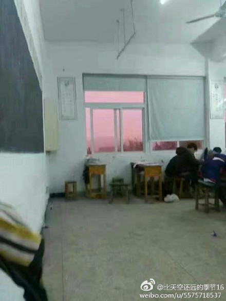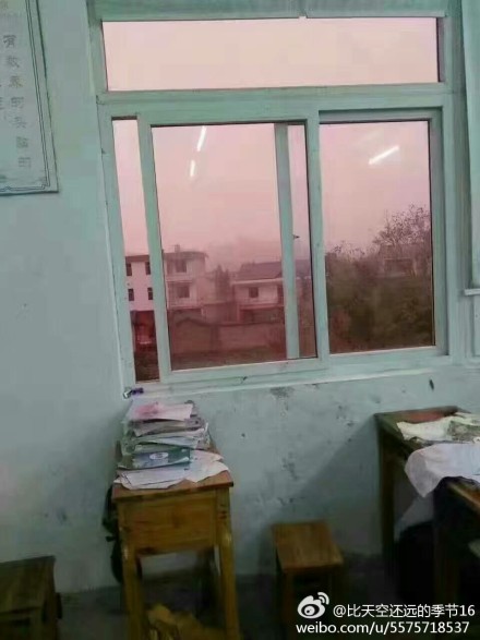 根據大陸媒體報導,拍攝照片的民眾位在江西一處學校裡,屏除原本就非常嚴重的霧霾不說,現在又染上了神秘又詭異的血粉紅色彩,完全不曉得到底是什麼樣的原因造成這種異常現象,讓不少人都非常擔心這樣的狀況是否會對健康造成嚴重危害,連要踏出室外一步都必須全副武裝戴緊口罩,並鼓起十足的勇氣漫步在其中。