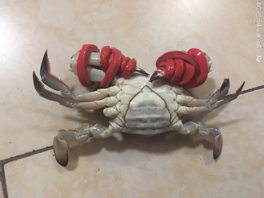 一位大陸天津的網友平常愛吃美食,微博上有分享許多食物的照片,看起來是一位饕客,日前她在市場看到肥美又新鮮的螃蟹一斤150元(約台幣660元)人民幣,他花了約500元人民幣(約台幣2216元)買了兩隻回家自己料理,結果發現才區區兩隻螃蟹除了使用一般的細橡皮筋來固定,還另外加了18個大橡皮筋來捆綁。